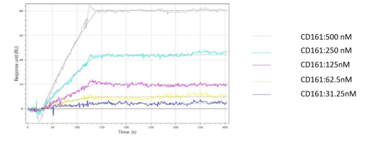 SPR result shows CLEC2D captured on CDH chip binds Human CD161 (E. coli; Batch Number: 20241203) with kD of 0.3 nM.