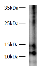 Western blot of zebrafish lysates with anti-LC3b Rabbit Polyclonal Antibody at dilution of 1:1000